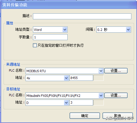 1,通过COM1口RS232与三菱FX系列plc建立连接