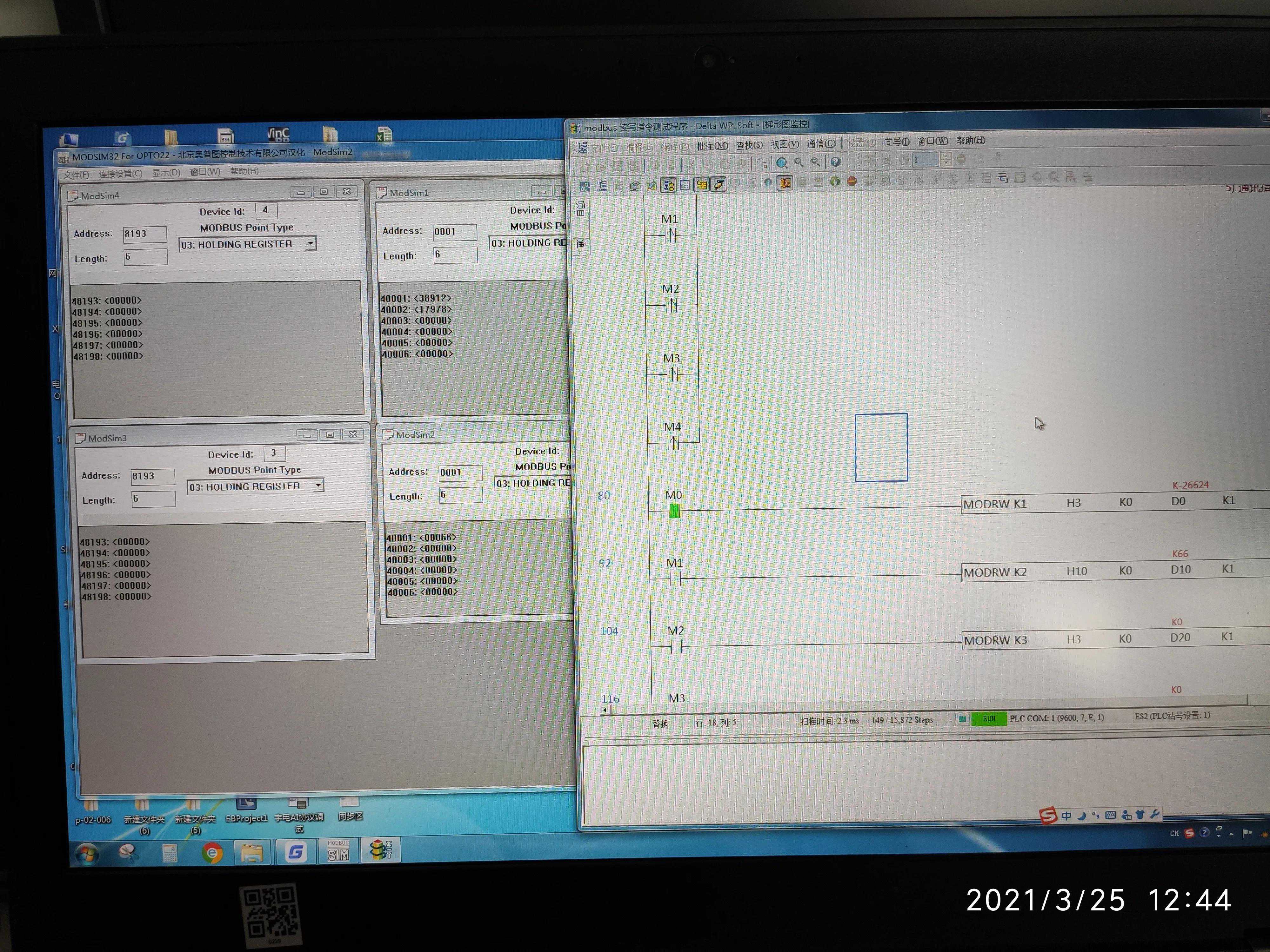 软件里面一个小窗口就是一个modbus从站(相当于一台变频器或者温度控制模块),用usb转485数据线把plc和电脑连接起来,usb端插电脑usb口,485线连接在台达plc的com2D+D-上,然后plc接好电源线上电,把plc程序下载到cpu中,