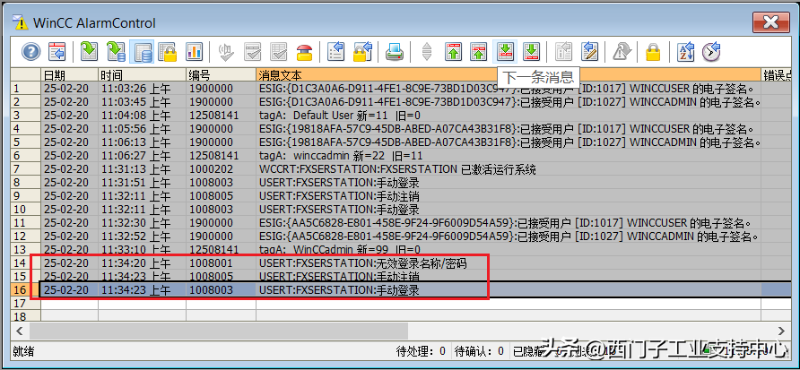 2.9WinCC中能否查询Logon的日志?