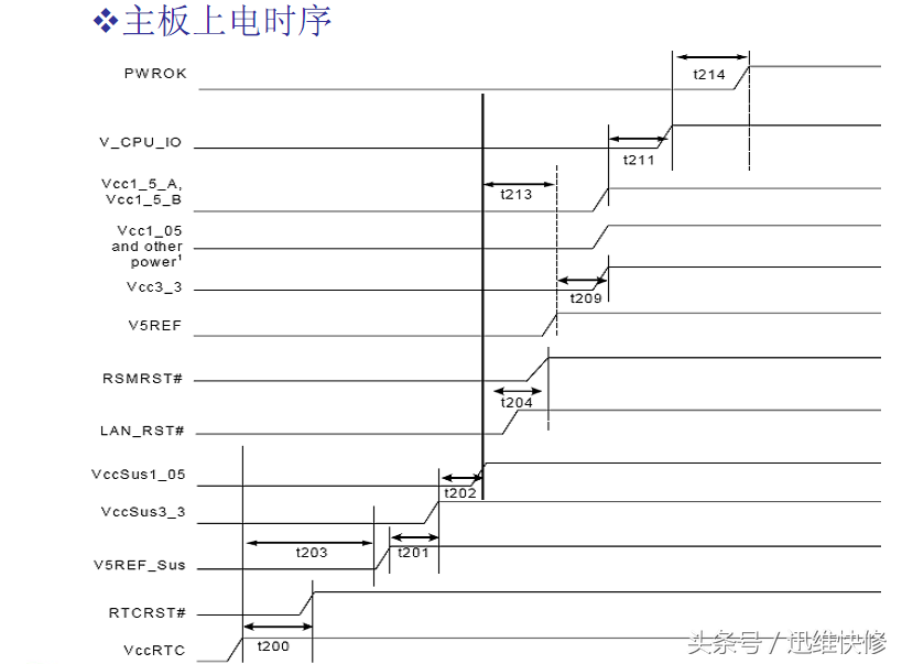 第三步,参考芯片组时序检查主板各时序工作是否正常,时序图如下: