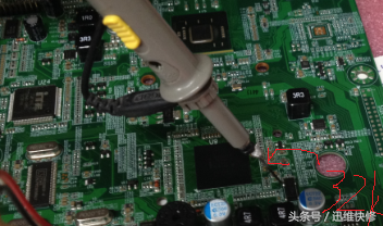 经过三分钟苦战后,主板上两个PWROK信号也是好的,看来只剩下时钟电路了。用示波器找时钟上33M无输出,向前跟进量晶体不起振啊。