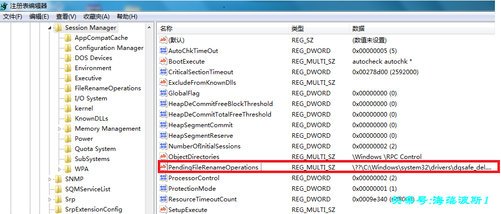这时,单击开始运行,输入REGEDIT,然后按ENTER键打开注册表编辑器,在注册表内"HKEY_LOCAL_MACHINESystemCurrentControlSetControlSessionManager"中删除注册表值"PingFileRenameOperations"