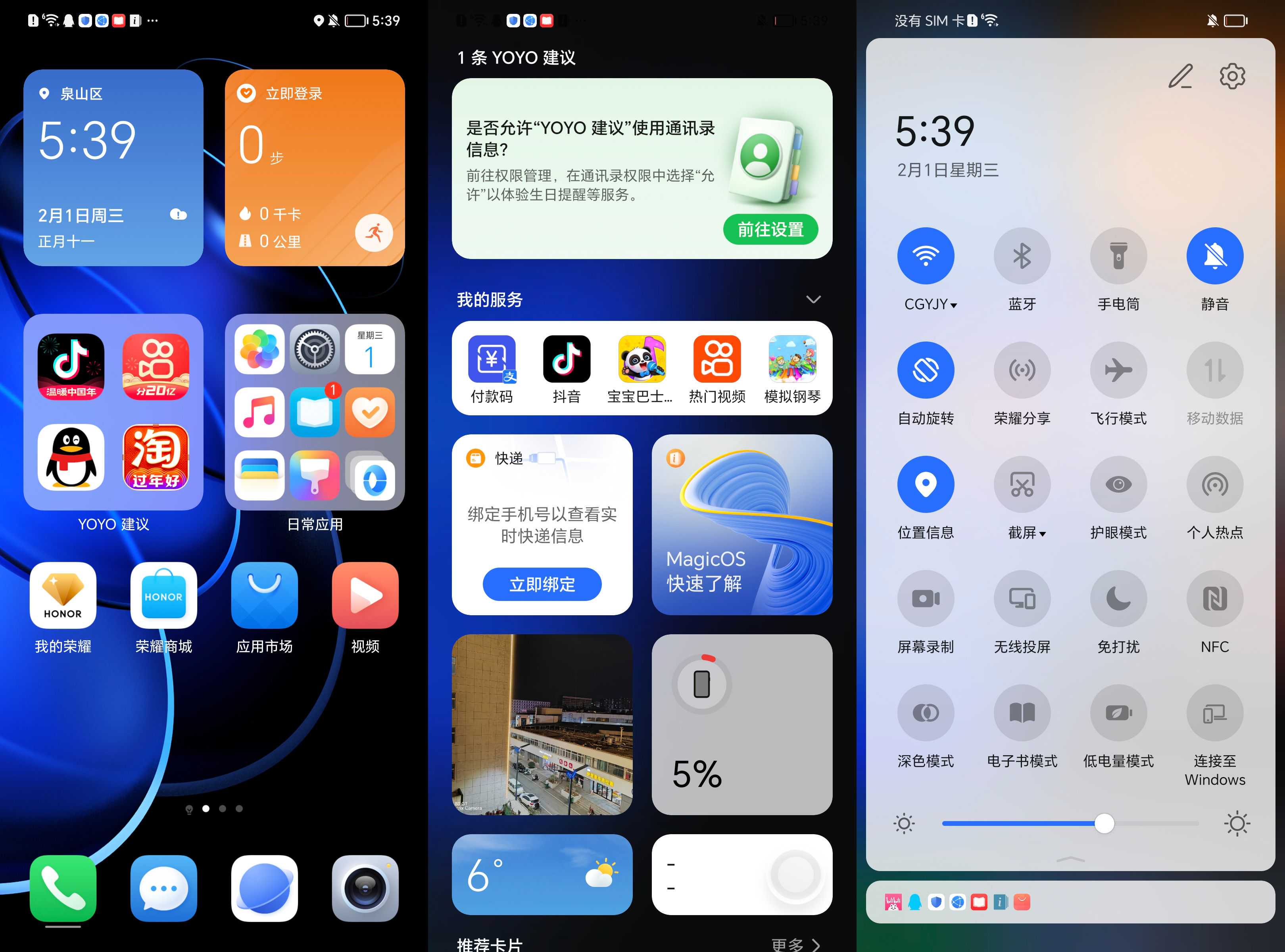 系统对比接着是对于操作系统的对比,首先是荣耀的,作为荣耀的老用户对于十分亲切,没有上手门槛。我认为的特点是:朴实无华+人性化。它的基础操作真的很朴实,没有花里胡哨的东西,就是简单好用,此外像无线投屏、PC连接、多设备协同等功能又很人性化,整体体验很棒。
