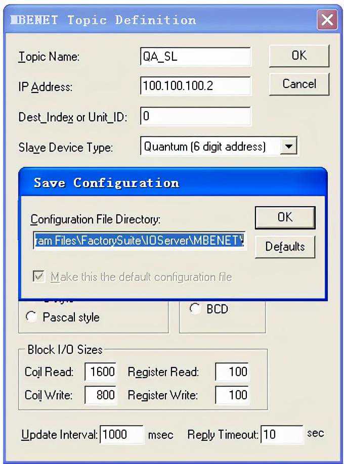 IOServer是连接intouch和下位PLC的通讯软件。以1炉上料为例子,上料的PLC地址为100.100.100.2。