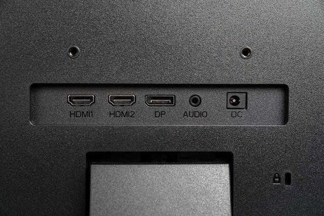 接口方面科睿P4的设计与科睿P5一样,并非在底部而是在背部,这样的好处是在拔插线束的时候更加方便,科睿P4支持2个、1个、音频输出接口以及电源接口,兼容笔记本、台式机、XBOX,PS、Switch等各种类型的主机设备,为玩家带来方便的日常使用体验,同时音频输出接口还可以外接音响、耳机等音频设备。显示器采用外置电源设计,实际上因为功率较小的原因,电源适配器并不大,日常使用还比较便捷。