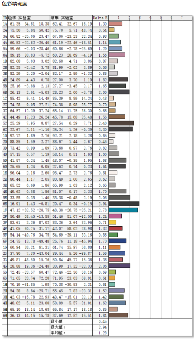 在色彩精准度的测试中,科睿P4显示器结果为平均△E值为1.28,色彩还原十分精准,一般来说△E值小于3肉眼几乎看不出色彩方面的差异,科睿P4甚至最大值都小于3,科睿P4的表现可以说相当优秀了。