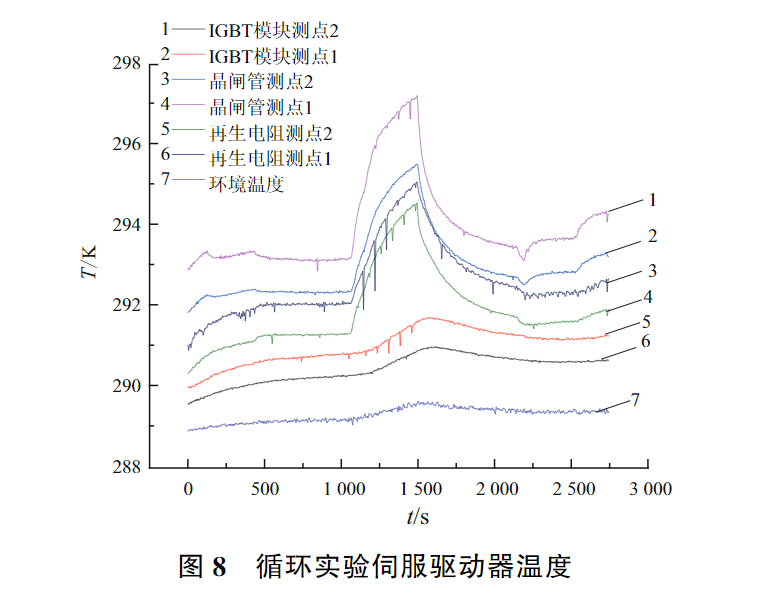伺服驱动器主要发热元件为IGBT模块及晶闸管,其热损耗因通电引起,在电动机高频换向的过程中将出现功率再生,此时驱动器的再生电阻将此部分能量以热能的形式耗散。