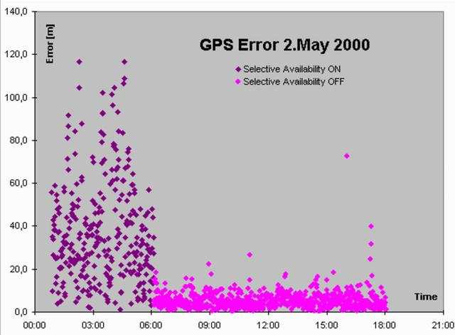但GPS是不以你的利益为第一位的,它是以美国利益为第一位,无可厚非。早期,GPS系统在所有的民用信号上放了干扰。后来为应对俄罗斯/苏联的格洛纳斯系统挑战,取消了这个干扰(2000年5月2日),然后定位精度就得到极大提高。