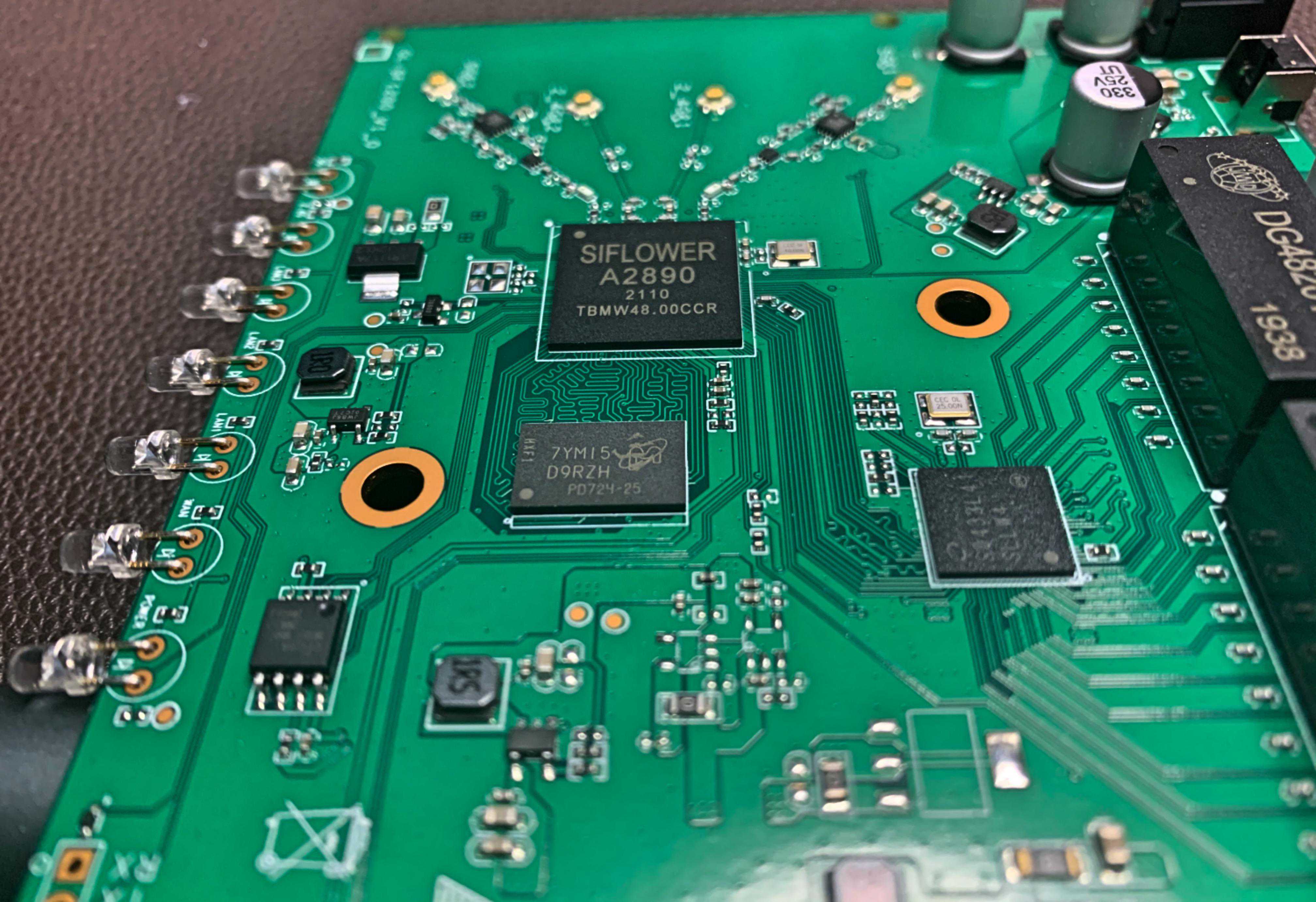 矽昌SF19A2890是矽昌通讯推出的第二款WiFi路由器芯片,内置双核CPU、2基带和MAC、双频RF,以及功率放大器、低噪放、滤波器等模块,为双频Wi-Fi设备提供了高性价比的单芯片解决方案。SF19A2890搭载的双核四处理器最高主频1GHz,配合高速Wi-Fi模块和硬件转发引擎,可提供稳定的866Mbps+300Mbps无线接入和全千兆路由转发性能,支持最多256个设备同时连接,完全满足各类Wi-Fi网络接入需求。
