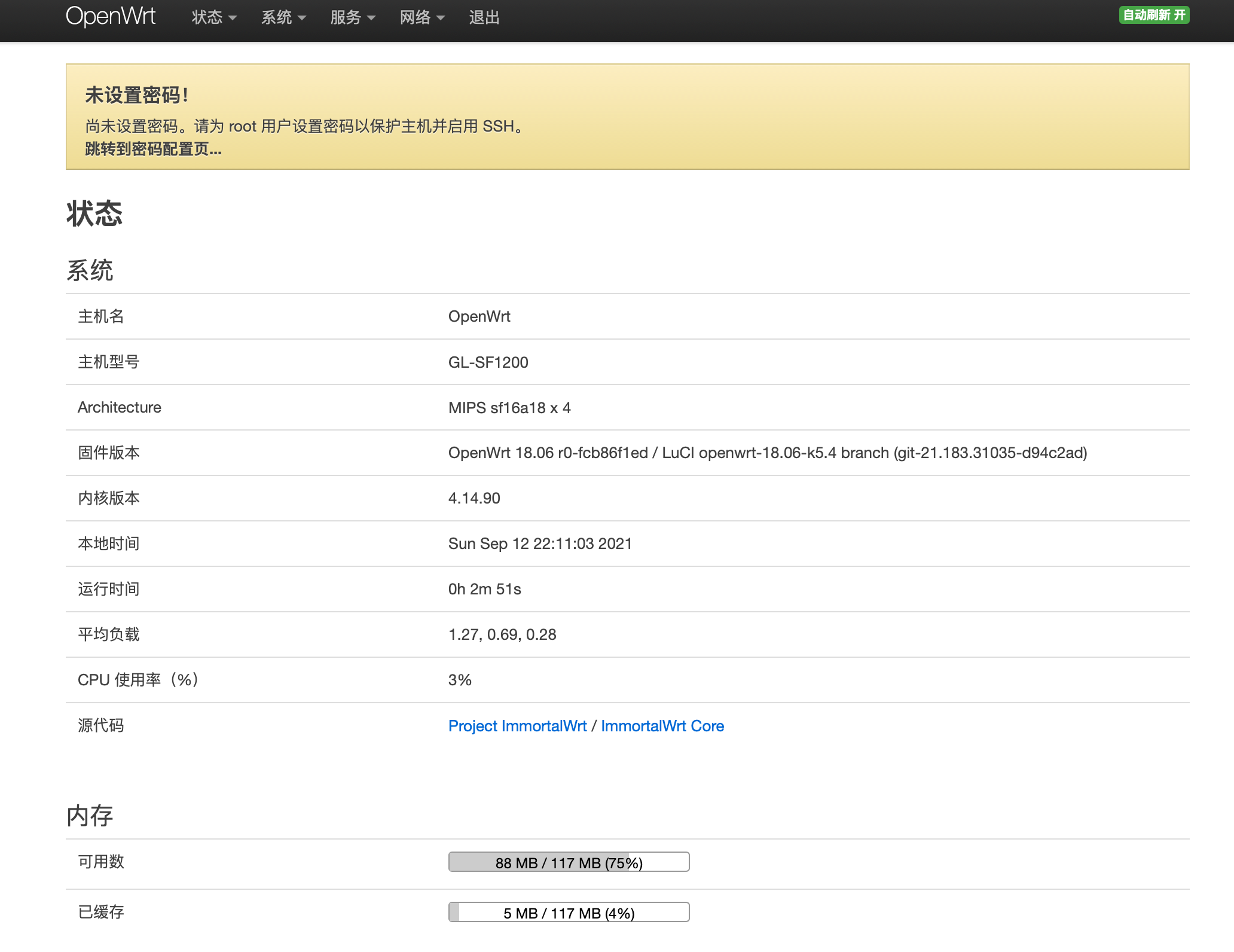 这个openwrt算是体验版,没加什么插件,所以GL官网下载了最新的固件,通过自带的不死UBOOT刷回去。