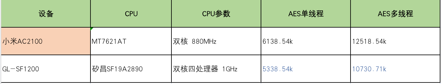 从我的统计表上看了一圈,也只能和MT7621AT比比了,我估计官方对标的就是这款CPU。AES单核多核跑分都稍微落后7621。