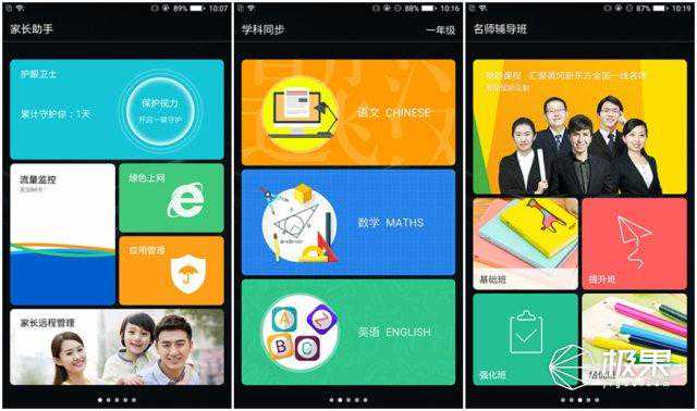 硬件只是一个载体,其实我们要重点体验的是,读书郎CLASSONE学习手机的学习功能,这也是这款手机最强大的部分,在独特的六大学习功能中,既包括了海量的学习资源,同时也有防沉迷、护眼等保护孩子的功能,既可以辅助孩子的学习,也可以让家长对孩子使用手机的情况进行管控。