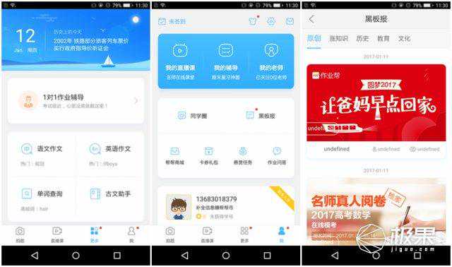 手机还内置了几款学习辅助软件,比如作业帮可以进行讨论、学习。进行1对1的作业辅导,还可以创建同学圈,黑板报中也能够学习更多知识。