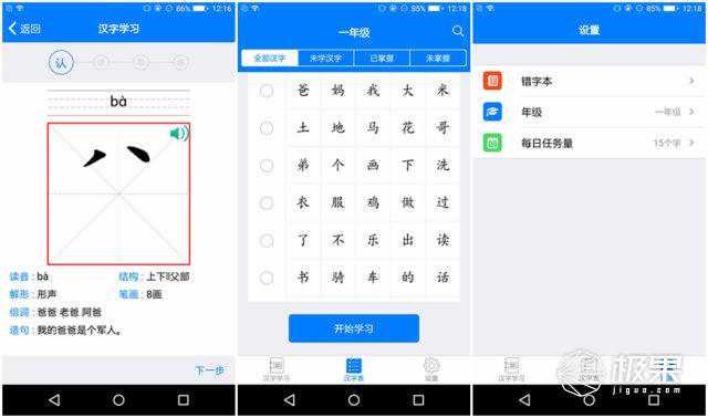 内置的汉子学习应用,可以从多个维度来教给孩子汉子,认、读、写、练四个维度通过动画演示,语音提示,让孩子可以快速掌握。