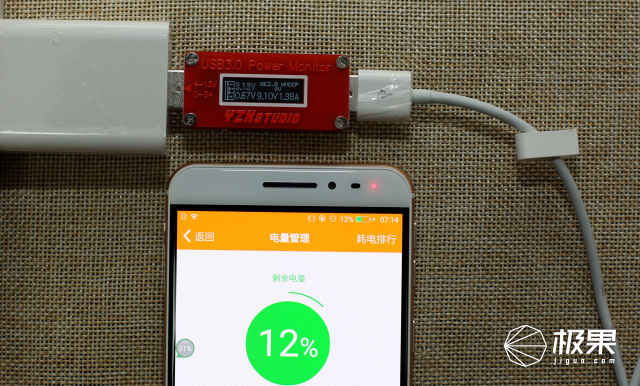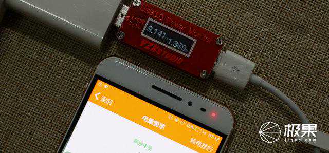 通过一款充电检测设备,我们可以看到已经检测到这款手机,支持高通充电,充电电压和电流都非常稳定,并且如果你使用的不是原装充电器,手机也可以检测到并提示进行电池保护,通过调整充电模式可以极大的延长使用寿命。