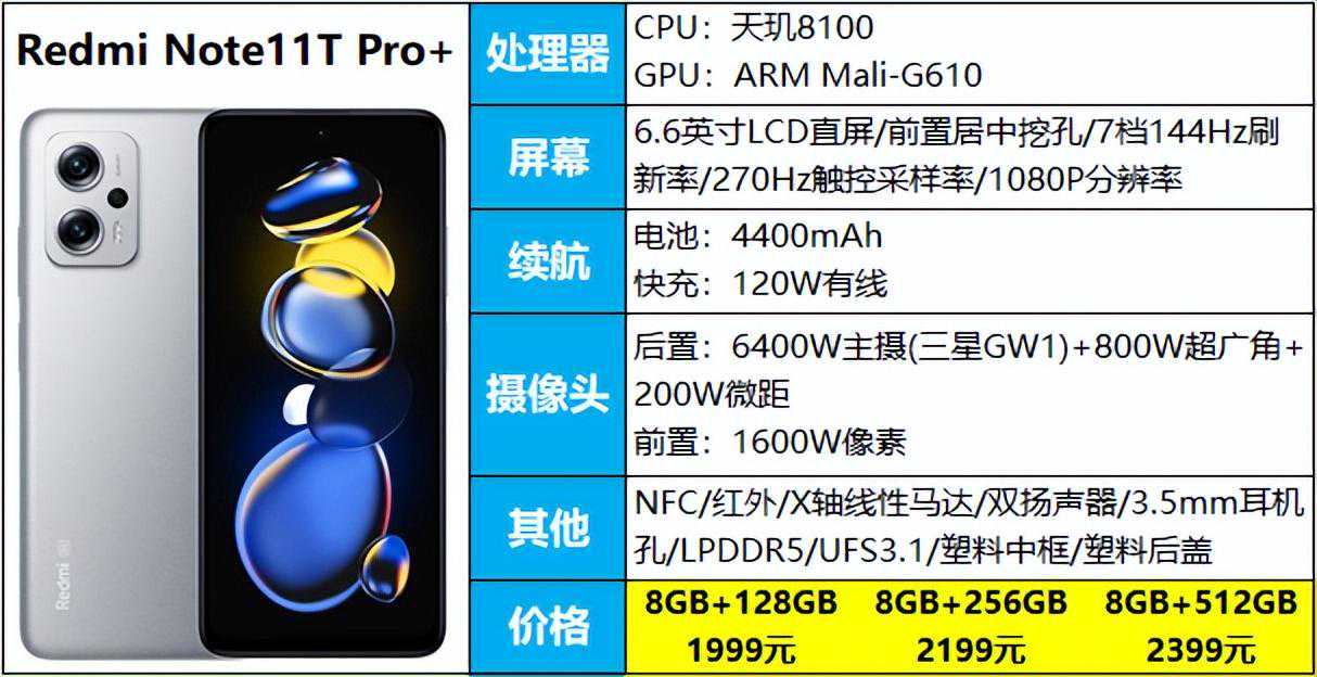 直到这2年联发科发展迅速,与其他平台的差距越来越小了,比如去年发布的联发科天玑1100,天玑1200等这些平台都让很多厂商刮目相看。而在2022年3月份,联发科发布了天玑8100,其优秀的性能,均衡的功耗,瞬间让国产手机厂商看到了希望,才发布没多久,已经有众多的厂商选择发布天玑8100平台的手机了,目前已经有7款手机用上了天玑8100了,包括RedmiK50,realmeGTNeo3,一加Ace,一加Ace竞速版,RedmiNote11TPro,RedmiNote11TPro+,OPPOReno8Pro+,那么这7款手机到底该怎么选择呢,下面给大家好好分析下。