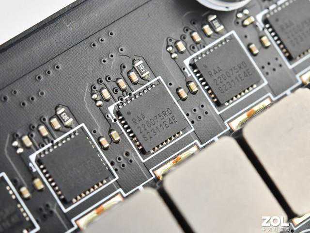 整个供电区域由两个金属I/O盔甲覆盖,并且提供导热垫辅助MOS管散热。