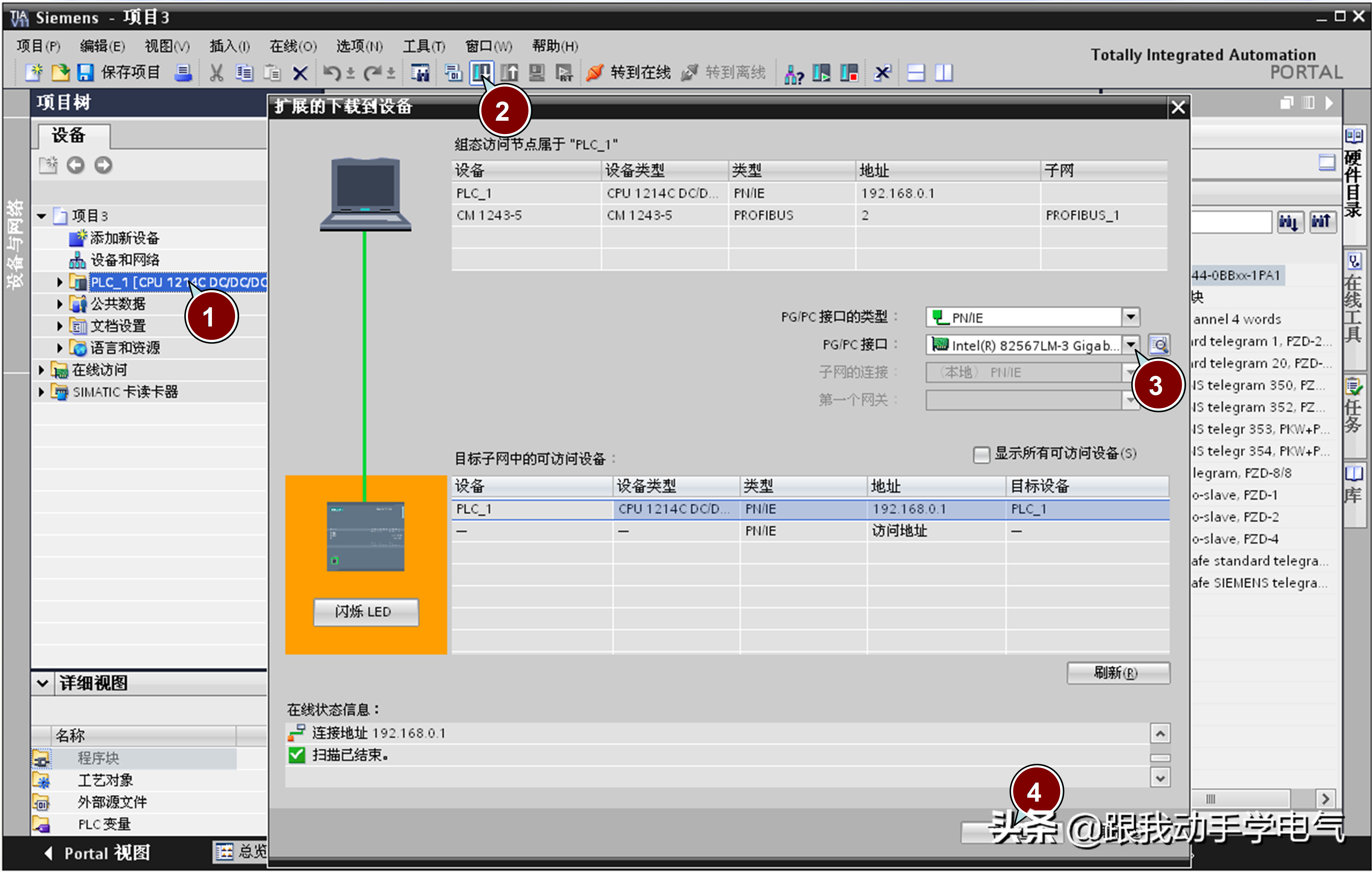 示例:通过TIAPORTAL软件“监控表”模拟控制变频器起停、调速和监控变频器运行状态。