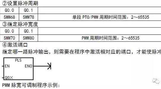 设定脉宽等于周期(使占空比为100%),输出连续接通。设定脉宽等于0(使占空比为0%),输出断开。