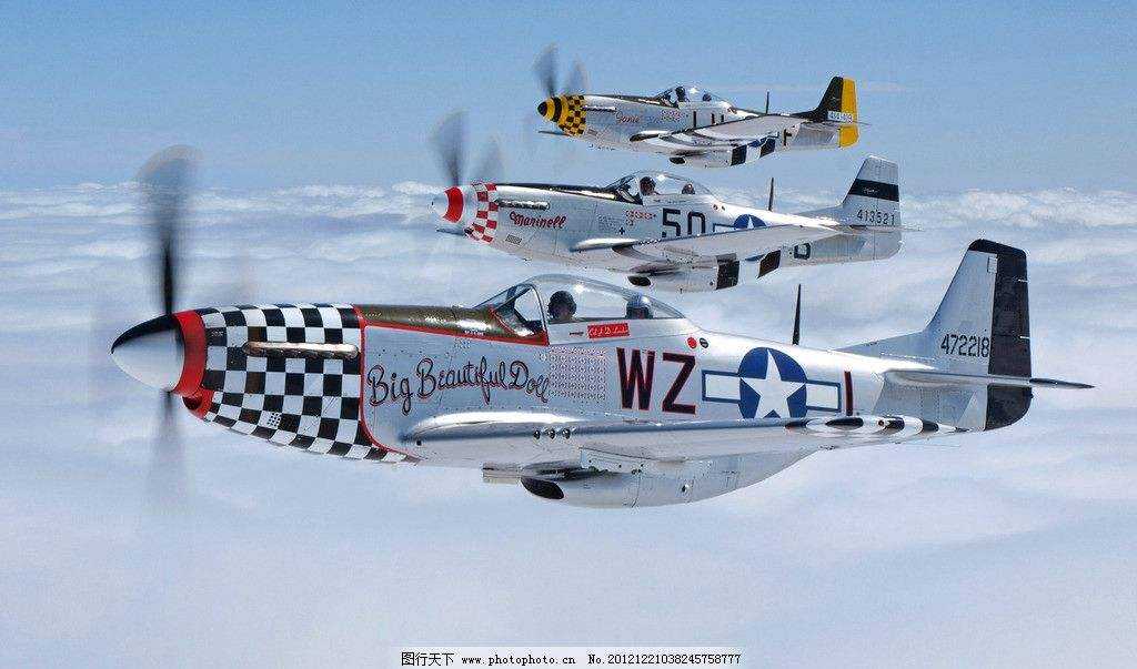 5、P51战斗机最早使用与老式的P40相同的液冷发动机,经过多次换装先进发动机,尤其是换二级二速增压的英国梅林发动机后,飞机性能急速上升,加上P51的设计非常完美,连动力系统中最易损坏的冷却液罐上都配置了防弹钢板,整体攻防性能大增。