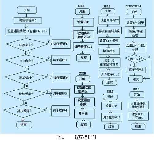 对于现在应用广泛的闭环控制、模拟量处理、通信联网、脉冲输出等均提供了相应的指令及使用途径。编程软件step7为用户提供了界面友好且功能强大的开发工具。本文拟就s7-200系列plc中cpu214通过与一台simovert微型主电机驱动器通信来起动、停止电机,以及改变电机的频率,介绍其特点并给出相应的应用程序流程图或源程序。