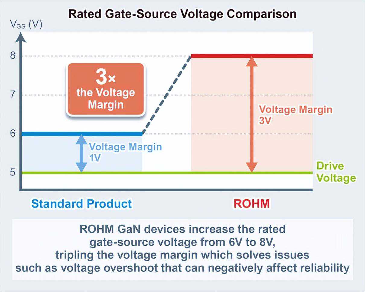 在氮化镓领域,罗姆在2018年就宣布跟GaNSystems达成合作;2021年,罗姆开发150VGaNHEMT,将额定栅源电压从典型的6V提高到了8V,既改善设计裕量,又提高可靠性。