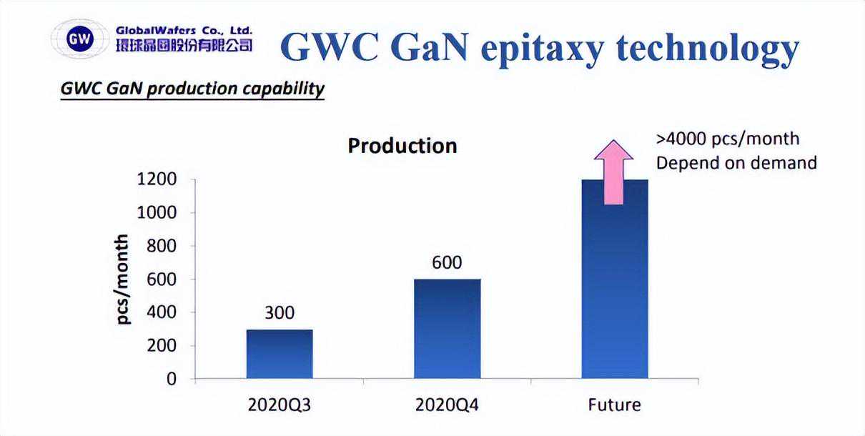 除了硅衬底外,环球晶还提供氮化镓外延片,2020年的产能大约为600片/月,当时他们表示未来产能会追加到4000片/月。