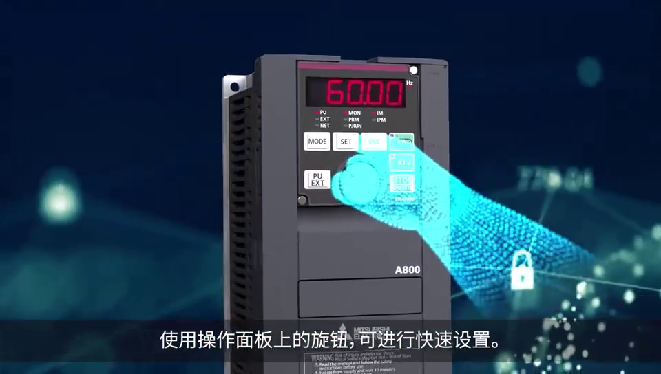 下面介绍一下三菱电机通用变频器的典型特点。发挥高效率的感应电机、IPM电机的节能性能,满足了客户不断增长的节能需求。通过低速高转矩驱动、高精度电机控制,实现平稳强力运行。使用操作面板上的旋钮,可进行快速设置。长寿命零件的使用及消耗零件的自我诊断功能,充分保障设备的稳定运行。符合功能安全标准,可减少安全认证的导入成本。
