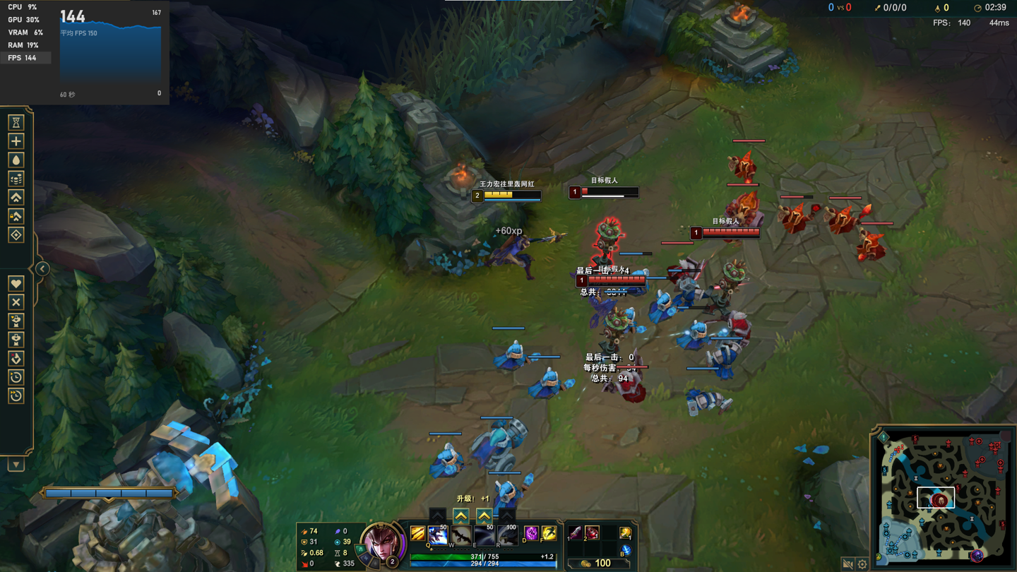 游戏体验前面我们有说过,MTTS80是首款支持Windows和DirectX环境的国产显卡,那么它的实际游戏体验怎么样?前面我们有提到,MTTS80暂时只支持DirectX9环境,所以我们只能选择一些比较老,但是受众广泛的游戏来测试。以下游戏我们均开到1080P低画质运行。首先是《英雄联盟》,达到了140-150帧,可以满足电竞级显示器畅玩。