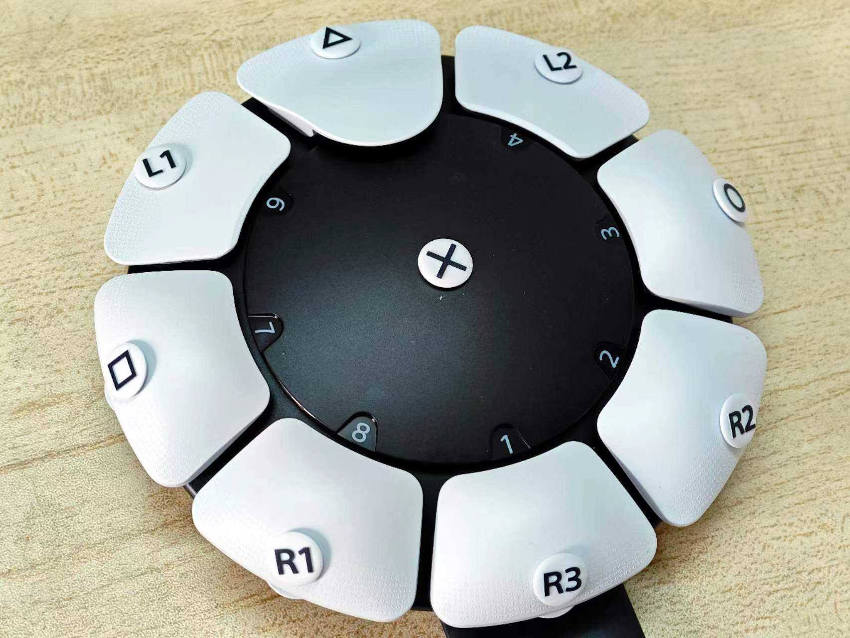 至于按键一侧,主要由八个围成一圈的按键和中间的按钮+触摸板组成,默认的弧形键帽按压起来轻敏有力,中间大面积的触控板摸起来手感相当舒适,对于无法精准按键的玩家有很大帮助。