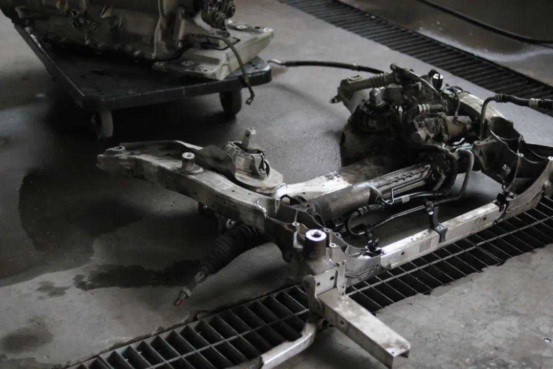 发动机、变速箱、连着元宝梁一起下来了。