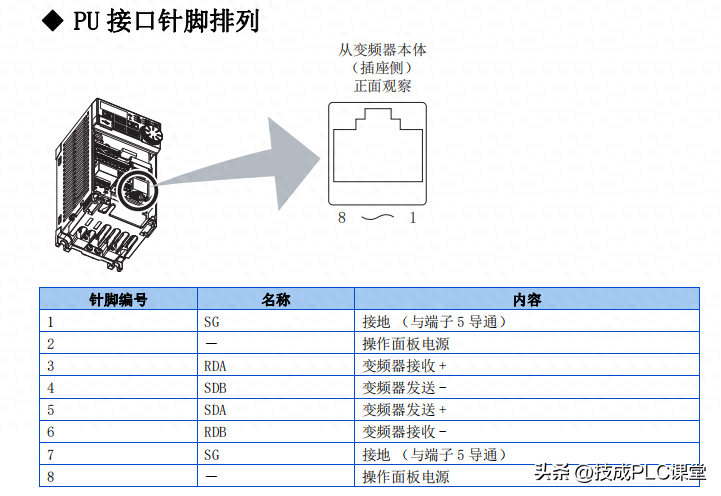 参考E800变频器手册得知: