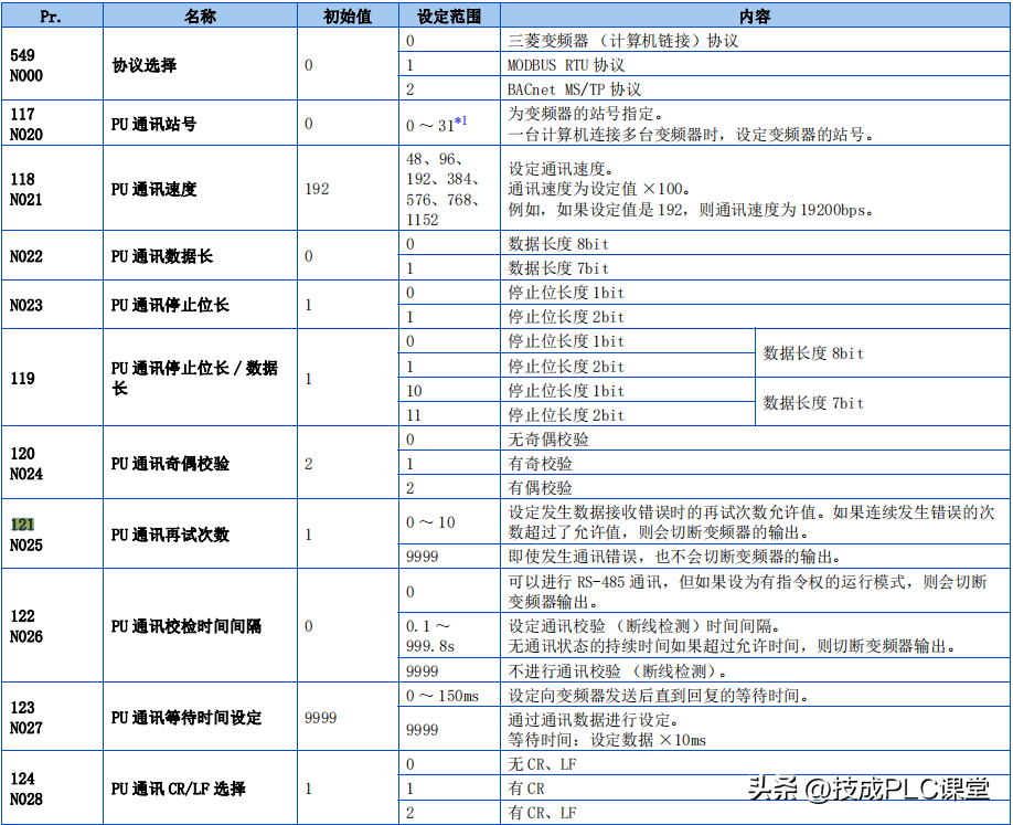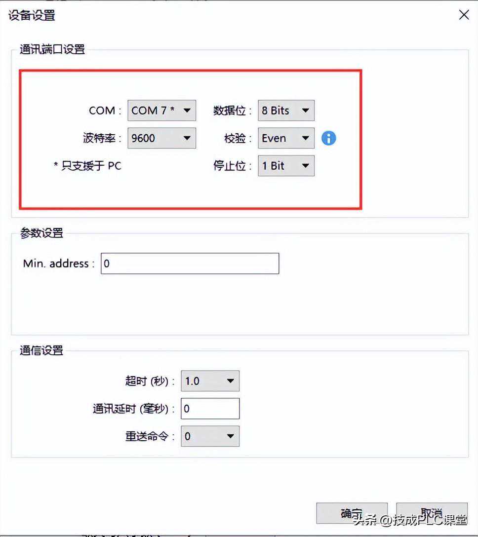 设置通讯参数: