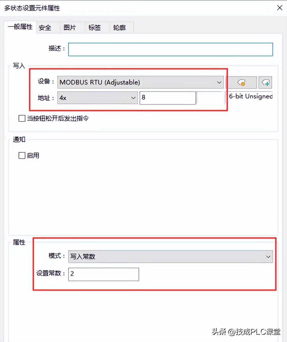 新建多状态设置元件,地址选择4X8,设置常数为2代表正转命令。