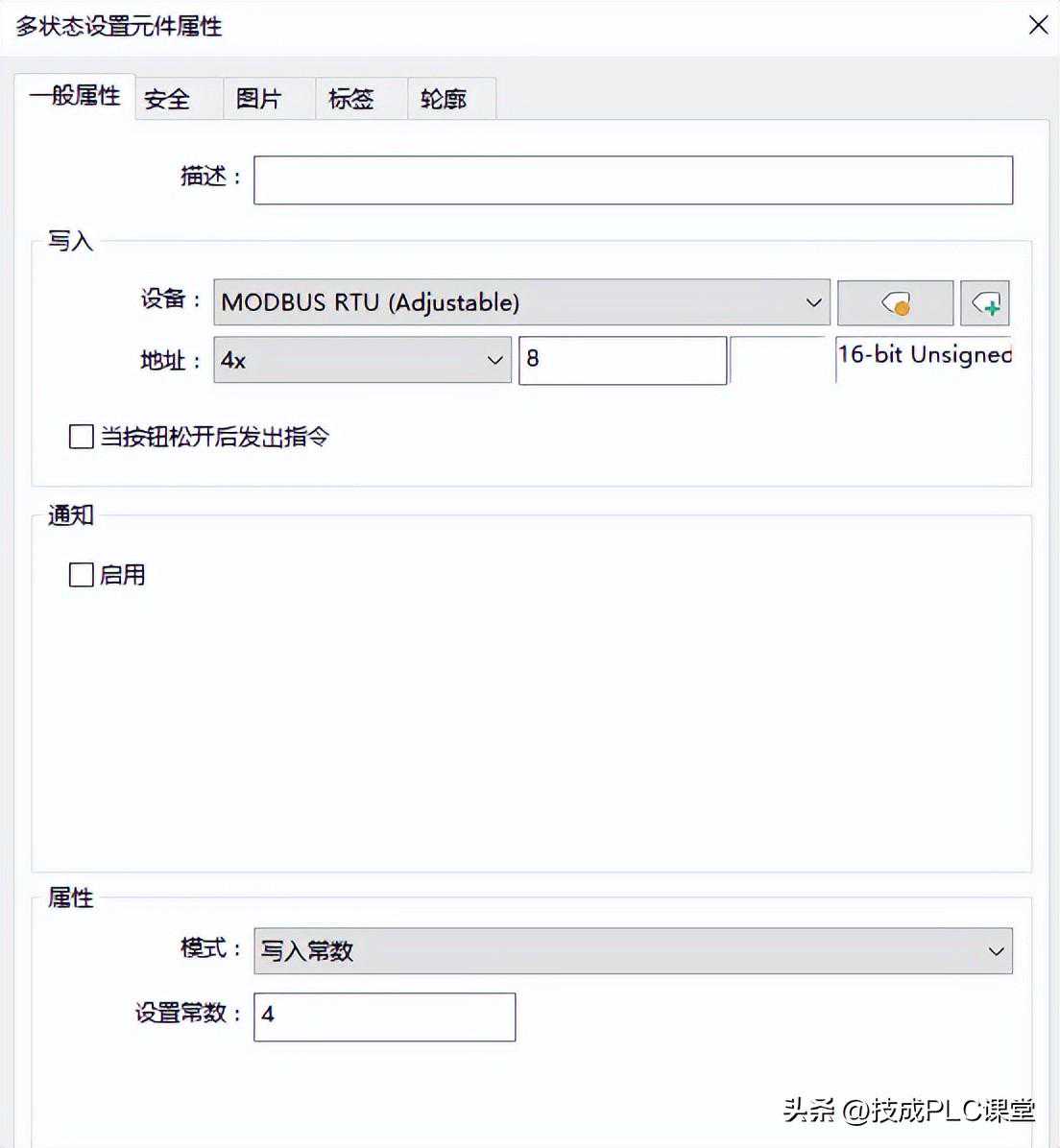 新建多状态设置元件,地址选择4X8,设置常数为4代表反转命令。