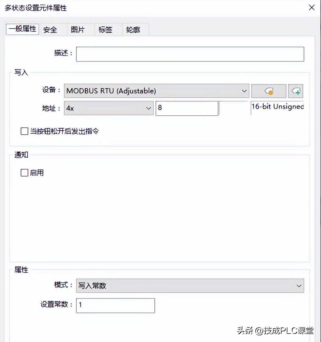 新建多状态设置元件,地址选择4X8,设置常数为1代表停止命令。