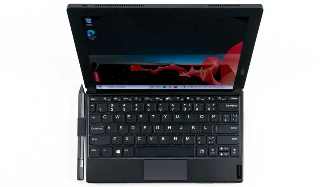 除了蓝牙键盘,这台电脑标配了LenovoModPen手写笔,触控和手写体验不错,比较遗憾的是手写笔的收纳只能插在键盘边上,不支持磁吸。