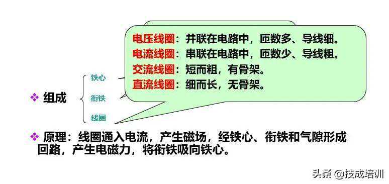 Ø继电器:有电磁式继电器(如电压继电器、电流继电器、中间继电器);时间继电器(分直流电磁式、空气阻尼式、半导体式等);热继电器;干簧继电器;速度继电器等