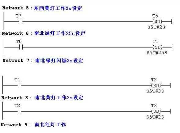 (5)以上南北、东西信号灯周而复始地交替工作状态,指挥着十字路口的交通,其时序如下所示。