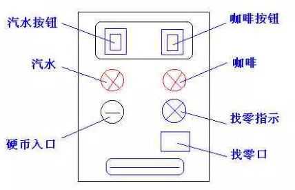币总值超过15元时,汽水及咖啡按钮指示灯都亮。3.当汽水按钮灯亮时,按汽水按钮,则汽水排出7s后自动停止,这段时间内,汽水指示灯闪动。4.当咖啡按钮灯亮时,按咖啡按钮,则咖啡排出7s后自动停止,这段时间内,咖啡指示灯闪动。5.若投入硬币总值超过按钮所需的钱数(汽水12元,咖啡15元)时,找钱指示灯亮,表示找钱动作,并退出多余的钱。
