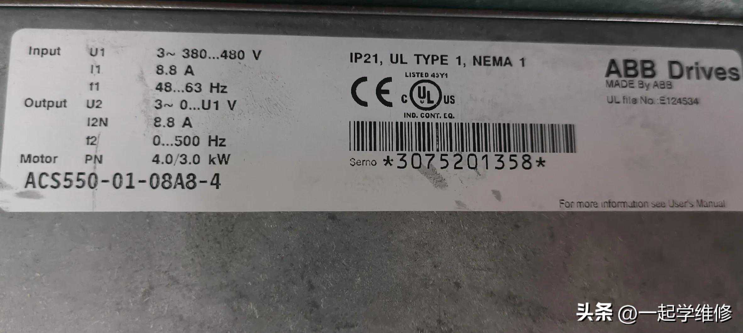近日接修一台ABBACS550系列4.0KW变频器