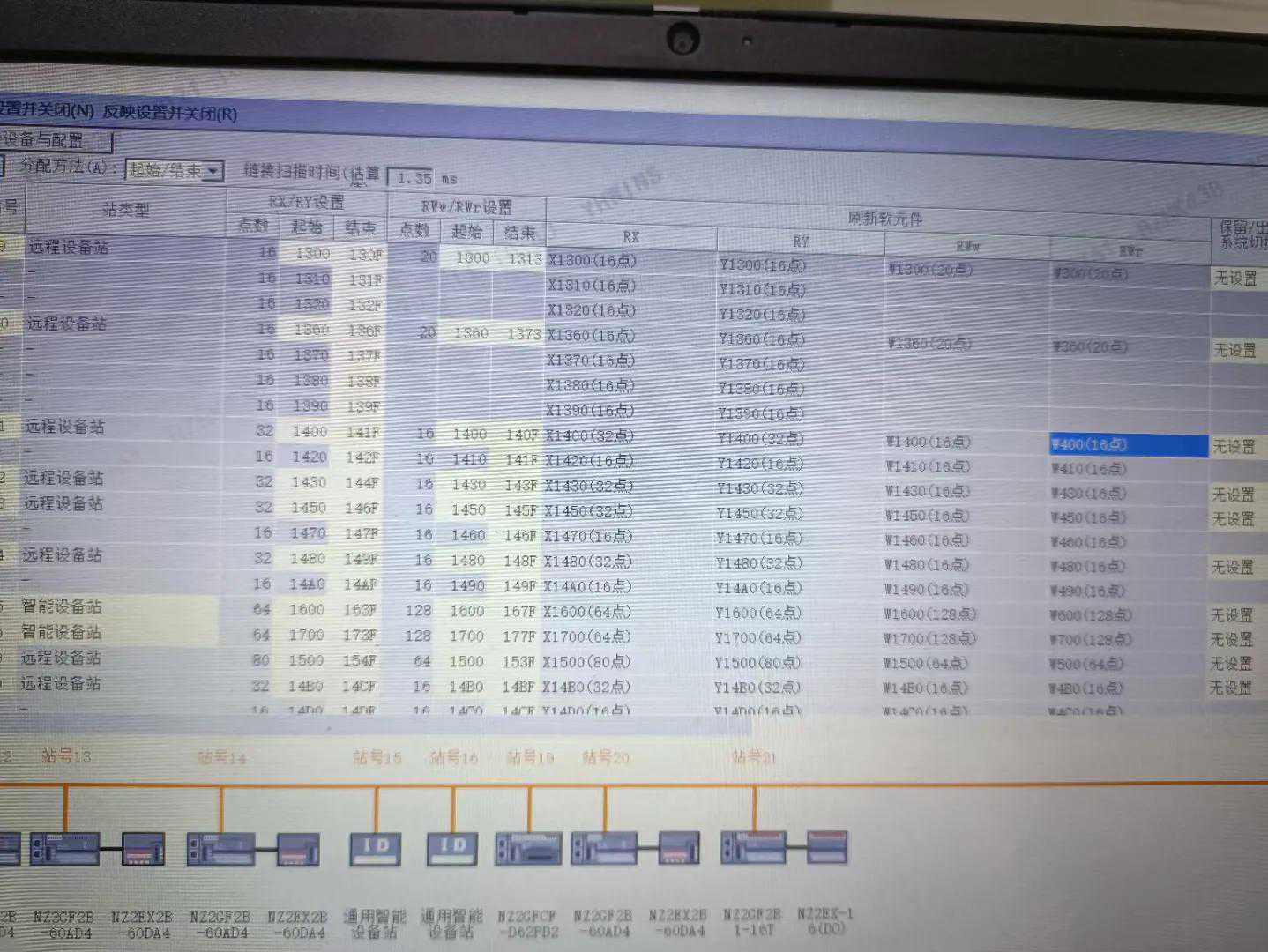 在CCIEField可以看到远程模块的各个站号和输入输出(读/写)地址,智能模块(包括伺服放大器)是不会在这里显示的,图中定义W400地址,我们使用W402-405地址做模拟量输入。