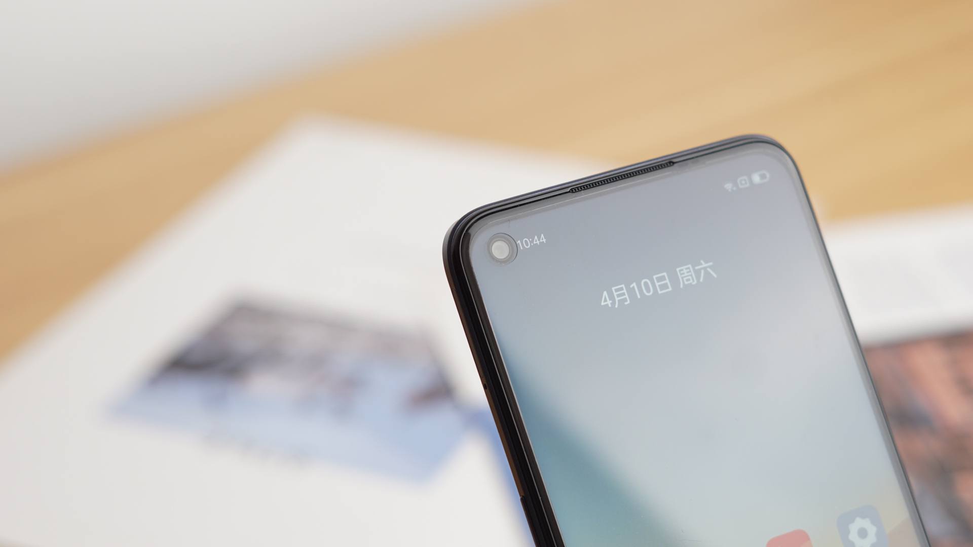 手机正面,realme真我V13采用6.52于英寸左上挖孔LCD全面屏,侧边实体指纹,支持90Hz刷新率,分辨率为1080P,从屏幕的配置上看,属于目前千元机的主流水准。