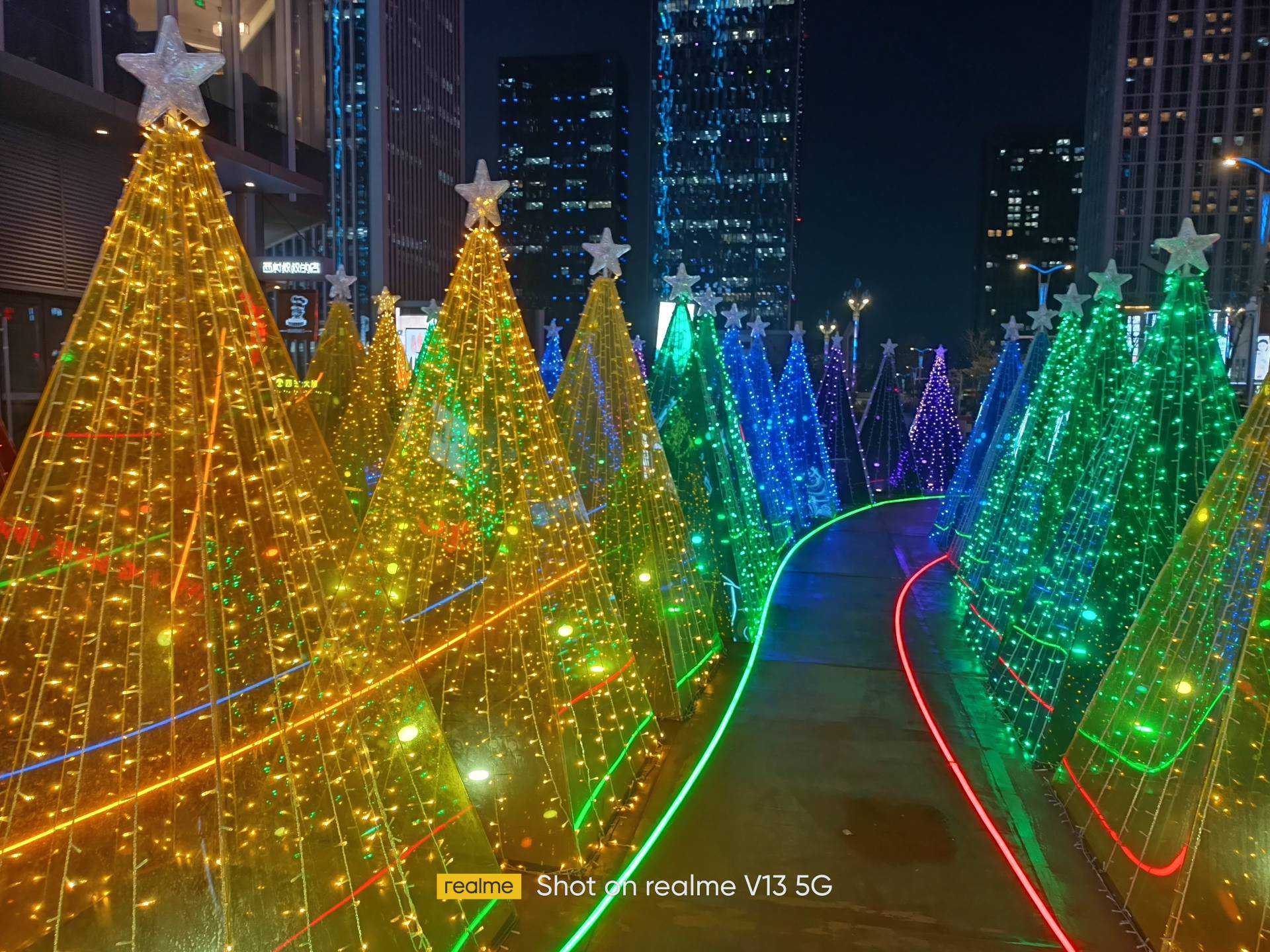 夜景方面,融合了多种影像算法,真我V13的表现还不错。与普通模式对比,从样张中可以看出,夜景模式下的画面纯净度表现不错,足够日常记录生活。
