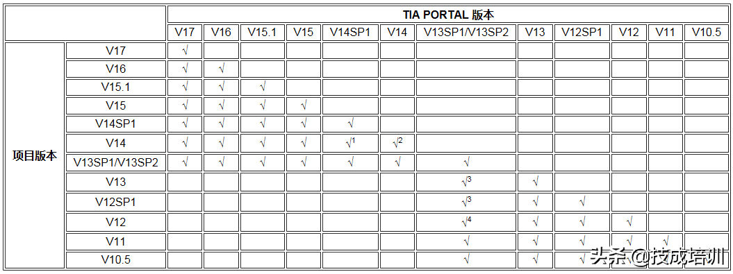 博途项目可以使用相同版本或者更高版本版本打开,例如V15可以打开V13SP1的项目,但是存在一些特殊情况,详见下表。