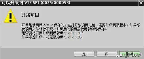 在博途V13SP1/V13SP2软件中,打开博途V13或V12SP1的项目时,会弹出以下对话框。