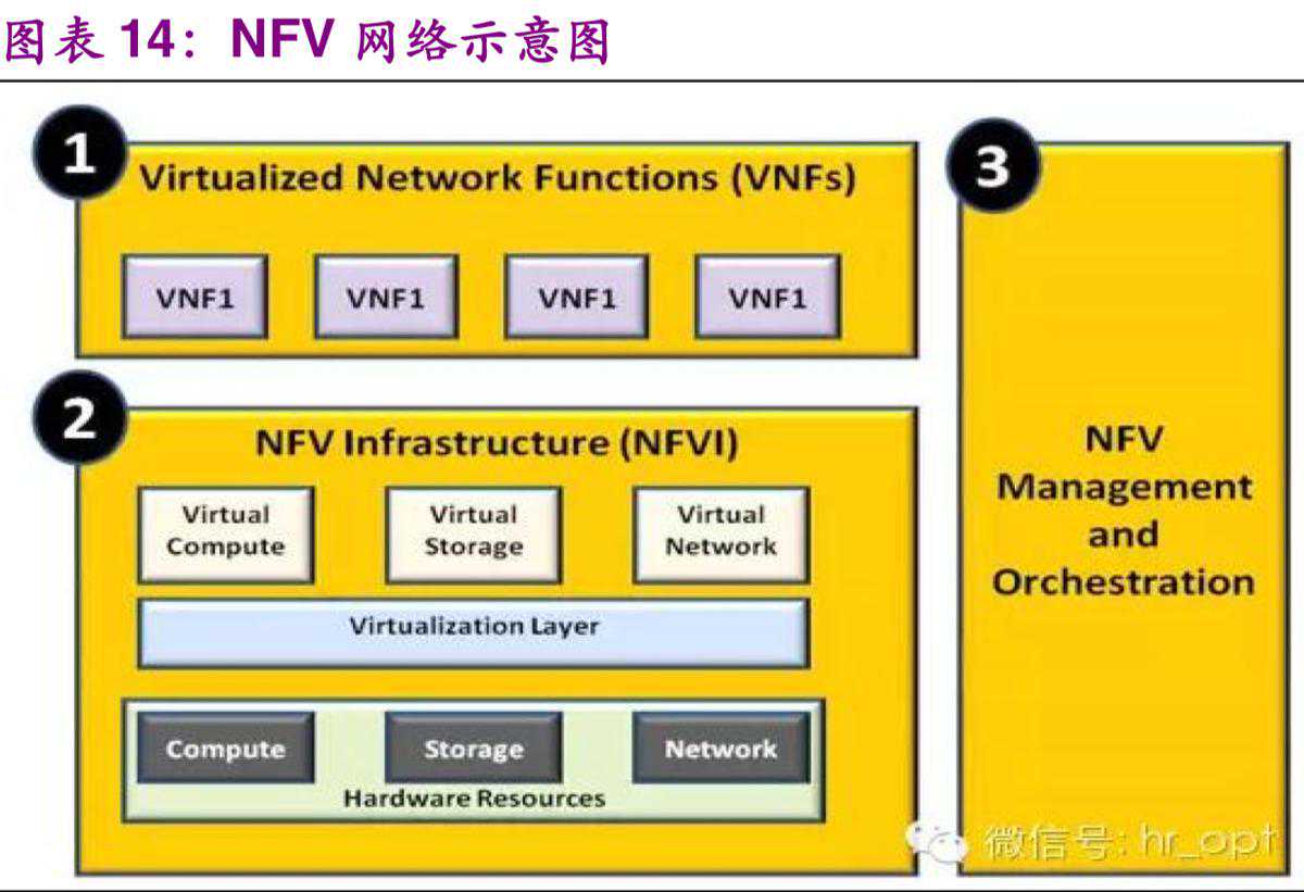 NFV,即网络功能虚拟化,NetworkFunctionVirtualization。通过使用x86等通用性硬件以及虚拟化技术,来承载专用硬件的软件功能。