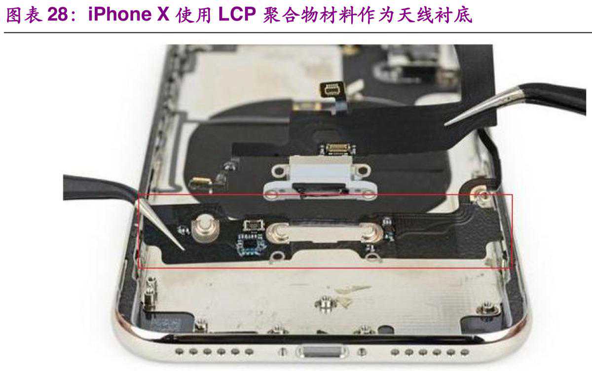 在新兴天线应用上,苹果手机自从2017年推出iPhoneX以来就一直使用LCP聚合物作为天线衬底,并且与射频前端器件集成在一起。未来进入5G时代此类设计方案有望成为手机终端的主流。