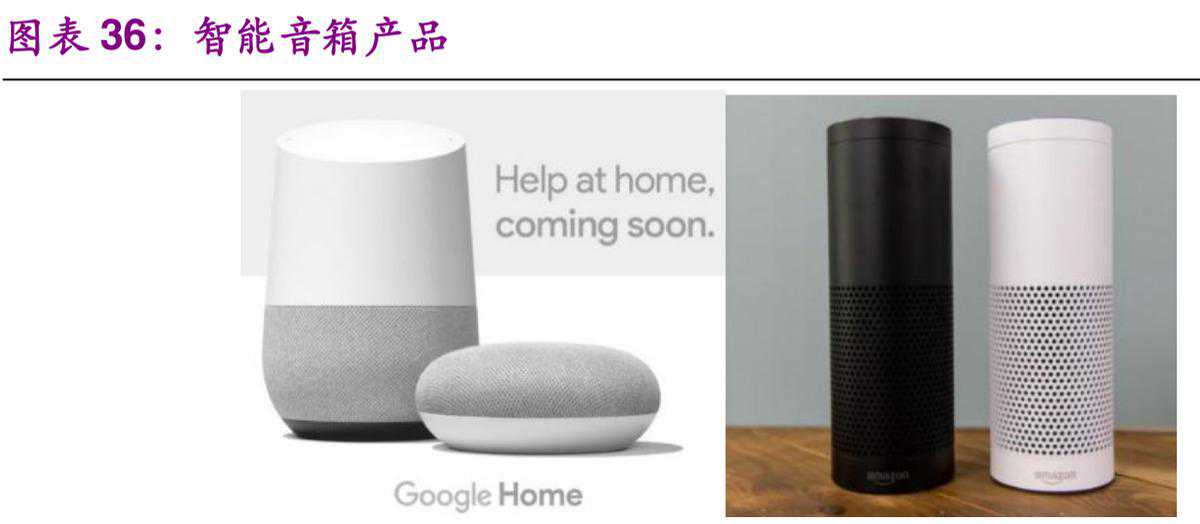 智能音箱是目前最受欢迎的智能家居产品,我们认为大概率将成为未来智能家居的入口。亚马逊在2014年11月首次发布Echo智能音箱,从而揭开了智能音箱普及的大幕。在看到亚马逊Echo的成功后,谷歌和苹果也相继推出了类似的智能音箱产品。谷歌在2016年的I/O开发者大会上,推出了GoogleHome,而苹果也在2018年2月正式发售其HomePod智能音箱。