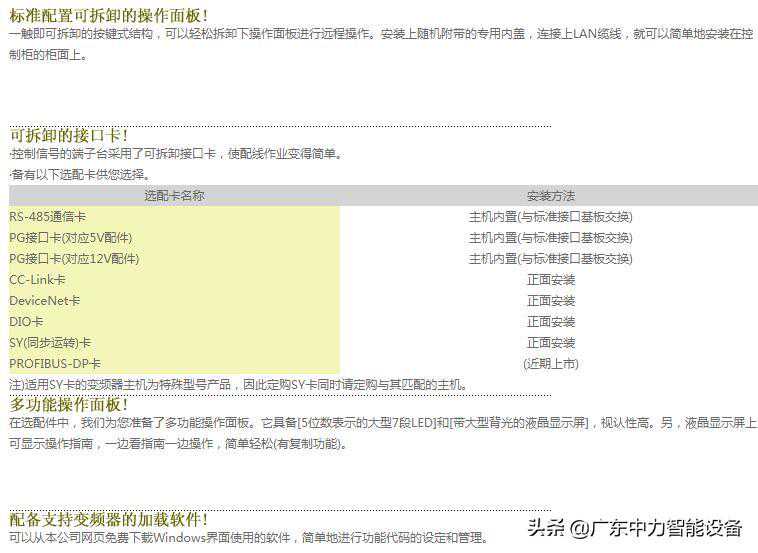 ·控制信号的端子台采用了可拆卸接口卡,使配线作业变得简单。